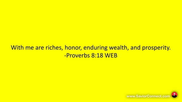 With me are riches, honor, enduring wealth, and prosperity. -Proverbs 8:18 WEB
