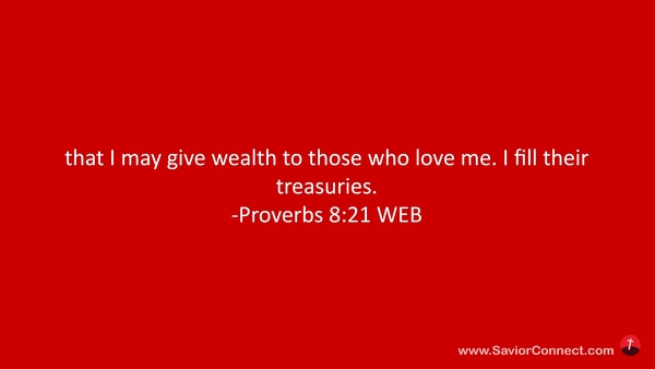 that I may give wealth to those who love me. I fill their treasuries. -Proverbs 8:21 WEB