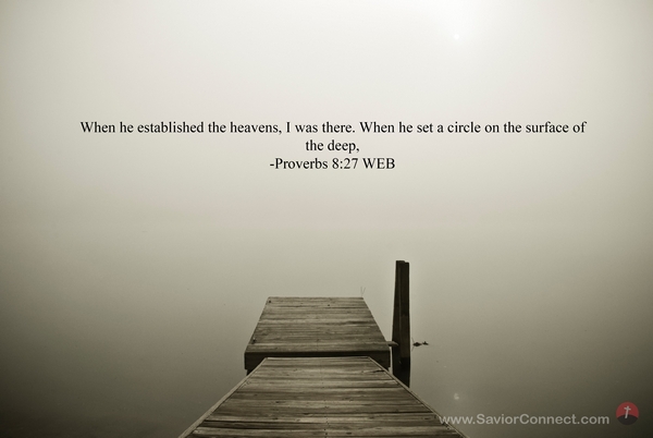 When he established the heavens, I was there. When he set a circle on the surface of the deep, -Proverbs 8:27 WEB