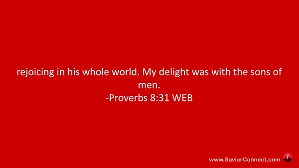 rejoicing in his whole world. My delight was with the sons of men. -Proverbs 8:31 WEB