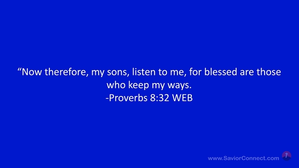 “Now therefore, my sons, listen to me, for blessed are those who keep my ways. -Proverbs 8:32 WEB