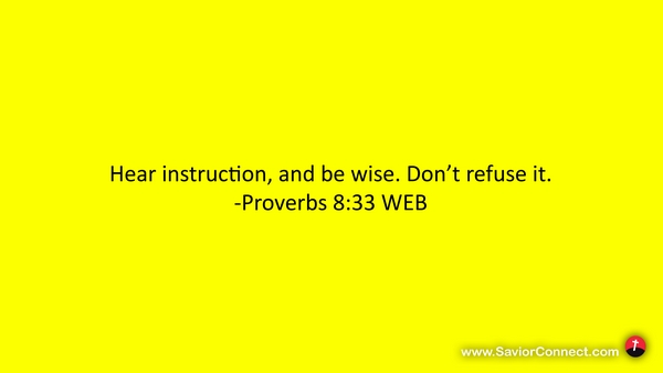 Hear instruction, and be wise. Don’t refuse it. -Proverbs 8:33 WEB