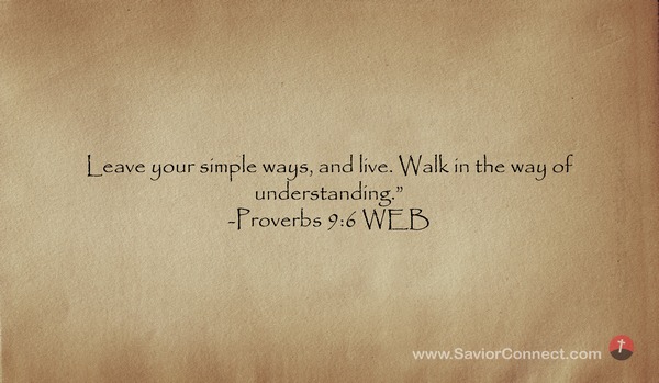 Leave your simple ways, and live. Walk in the way of understanding.” -Proverbs 9:6 WEB