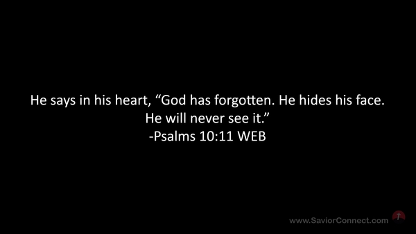 He says in his heart, “God has forgotten. He hides his face. He will never see it.” -Psalms 10:11 WEB