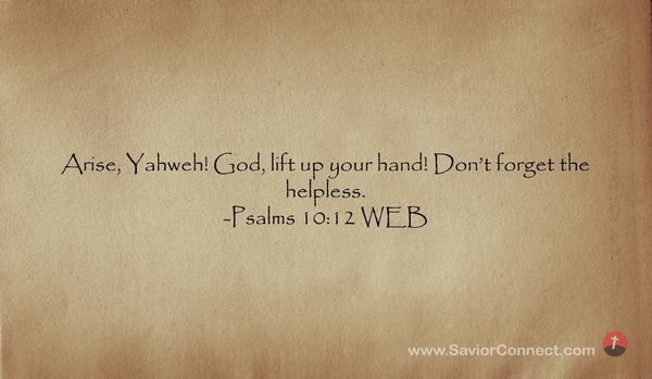 Arise, Yahweh! God, lift up your hand! Don’t forget the helpless. -Psalms 10:12 WEB