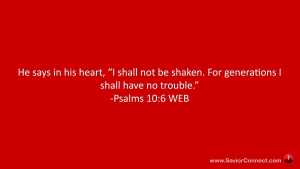 He says in his heart, “I shall not be shaken. For generations I shall have no trouble.” -Psalms 10:6 WEB