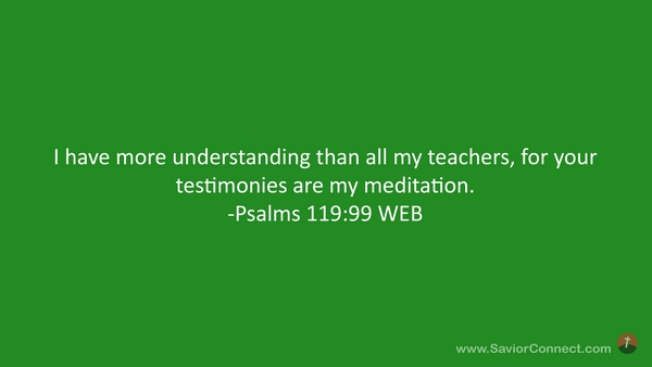 I have more understanding than all my teachers, for your testimonies are my meditation. -Psalms 119:99 WEB