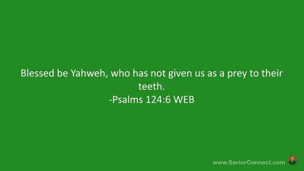 Blessed be Yahweh, who has not given us as a prey to their teeth. -Psalms 124:6 WEB