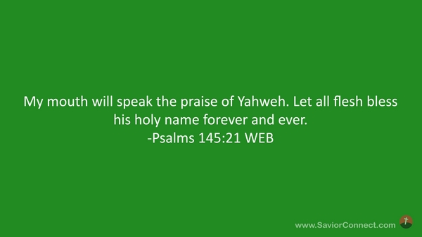 My mouth will speak the praise of Yahweh. Let all flesh bless his holy name forever and ever. -Psalms 145:21 WEB
