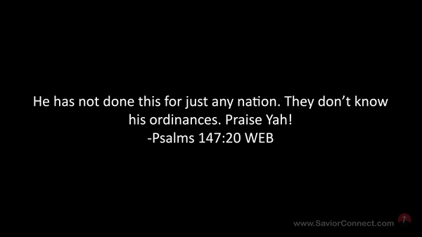 He has not done this for just any nation. They don’t know his ordinances. Praise Yah! -Psalms 147:20 WEB