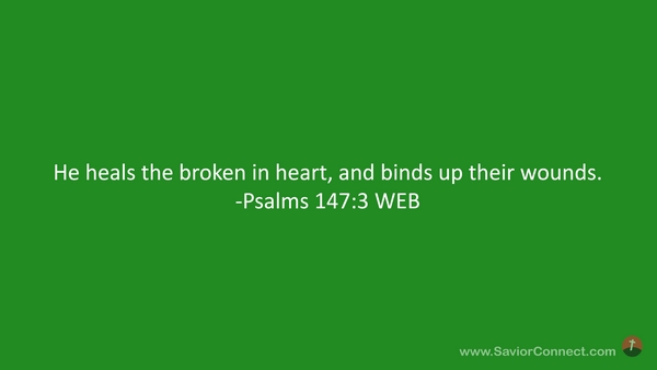 He heals the broken in heart, and binds up their wounds. -Psalms 147:3 WEB