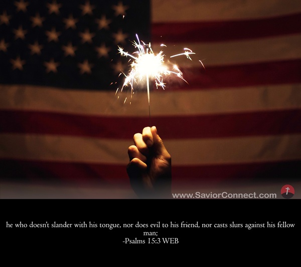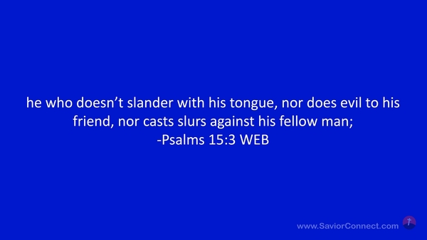 he who doesn’t slander with his tongue, nor does evil to his friend, nor casts slurs against his fellow man; -Psalms 15:3 WEB
