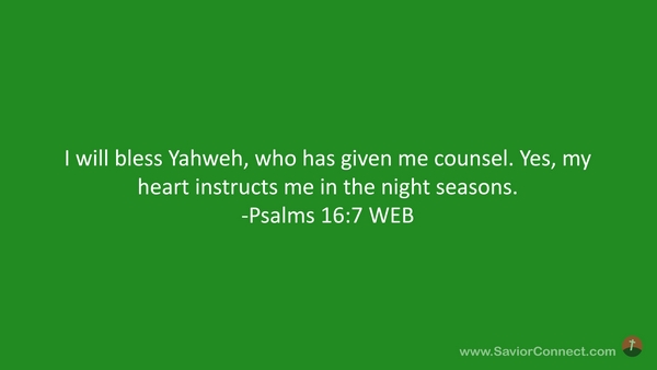 I will bless Yahweh, who has given me counsel. Yes, my heart instructs me in the night seasons. -Psalms 16:7 WEB