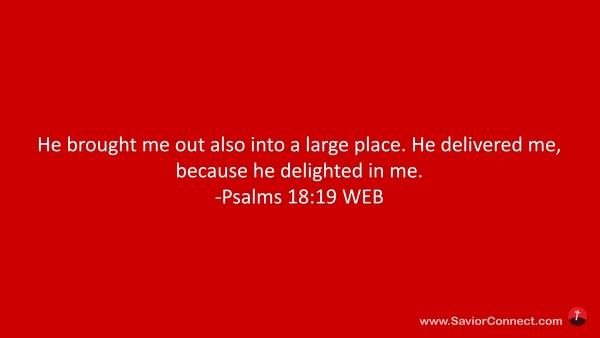 He brought me out also into a large place. He delivered me, because he delighted in me. -Psalms 18:19 WEB