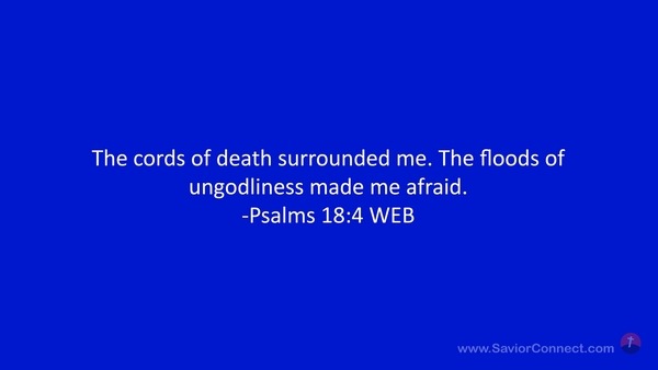 The cords of death surrounded me. The floods of ungodliness made me afraid. -Psalms 18:4 WEB