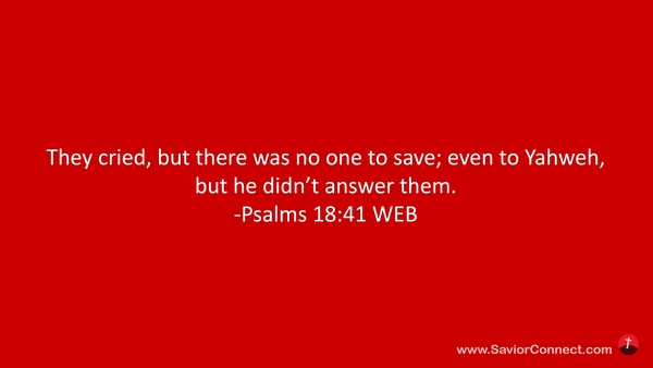 They cried, but there was no one to save; even to Yahweh, but he didn’t answer them. -Psalms 18:41 WEB