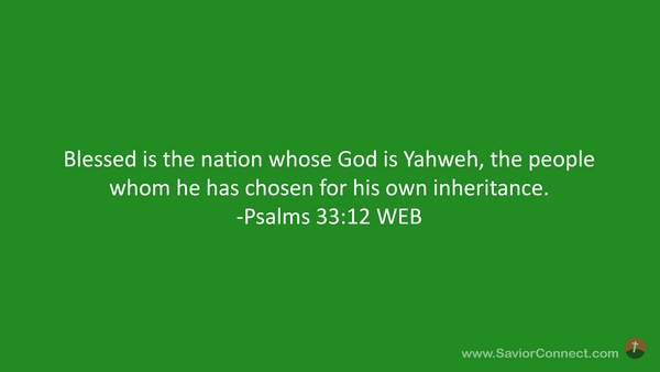 Blessed is the nation whose God is Yahweh, the people whom he has chosen for his own inheritance. -Psalms 33:12 WEB