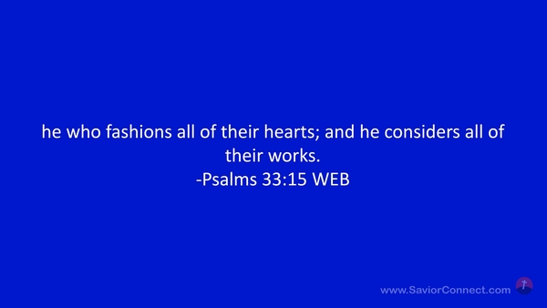 he who fashions all of their hearts; and he considers all of their works. -Psalms 33:15 WEB
