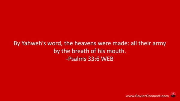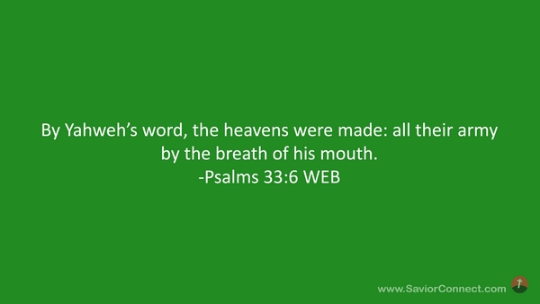 By Yahweh’s word, the heavens were made: all their army by the breath of his mouth. -Psalms 33:6 WEB
