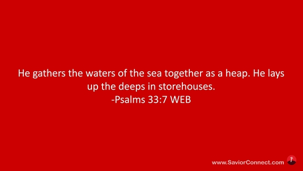 He gathers the waters of the sea together as a heap. He lays up the deeps in storehouses. -Psalms 33:7 WEB