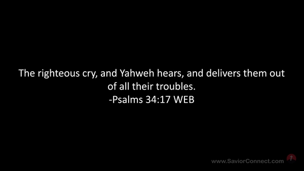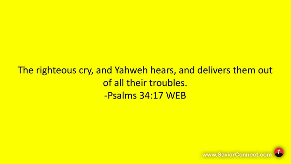 The righteous cry, and Yahweh hears, and delivers them out of all their troubles. -Psalms 34:17 WEB