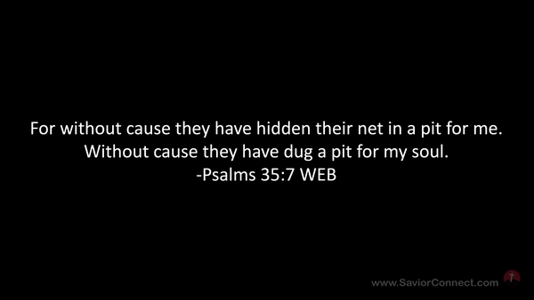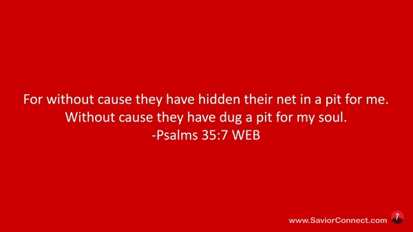 For without cause they have hidden their net in a pit for me. Without cause they have dug a pit for my soul. -Psalms 35:7 WEB
