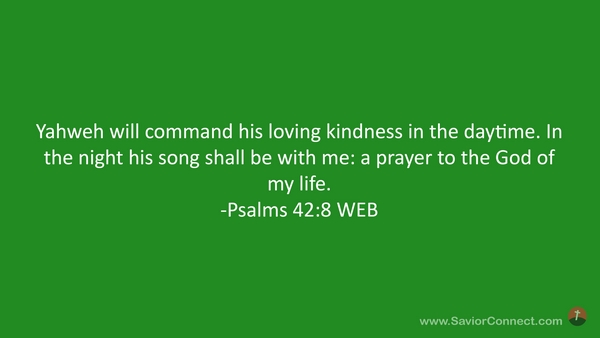 Yahweh will command his loving kindness in the daytime. In the night his song shall be with me: a prayer to the God of my life. -Psalms 42:8 WEB