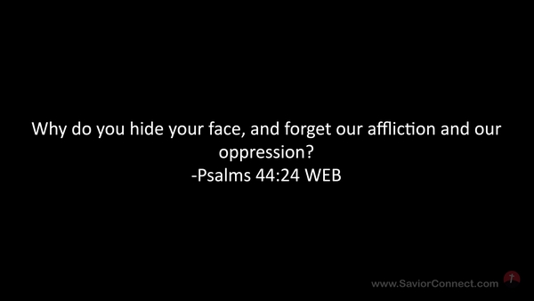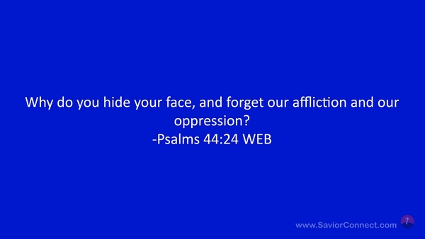 Why do you hide your face, and forget our affliction and our oppression? -Psalms 44:24 WEB