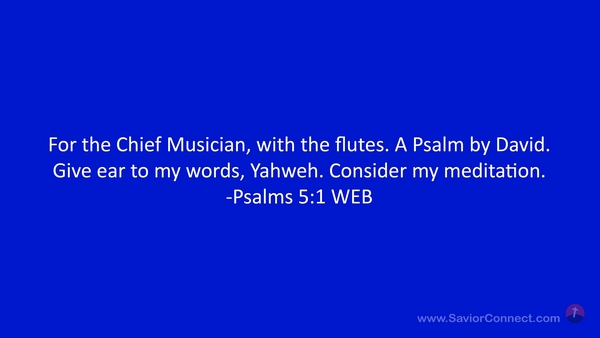 For the Chief Musician, with the flutes. A Psalm by David. Give ear to my words, Yahweh. Consider my meditation. -Psalms 5:1 WEB