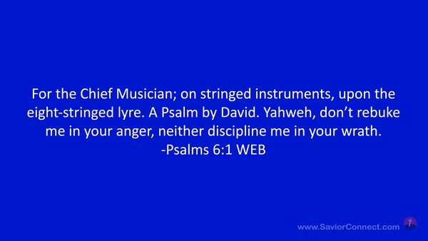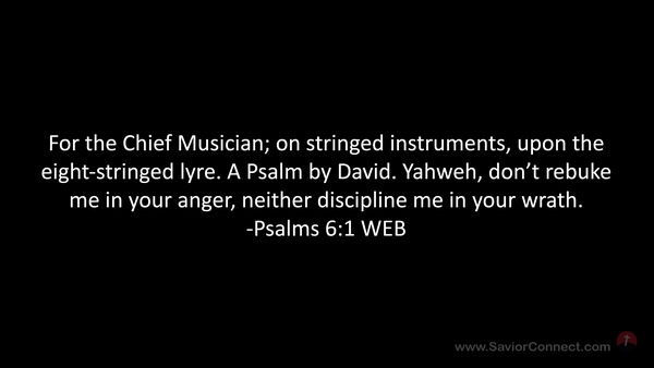 For the Chief Musician; on stringed instruments, upon the eight-stringed lyre. A Psalm by David. Yahweh, don’t rebuke me in your anger, neither discipline me in your wrath. -Psalms 6:1 WEB