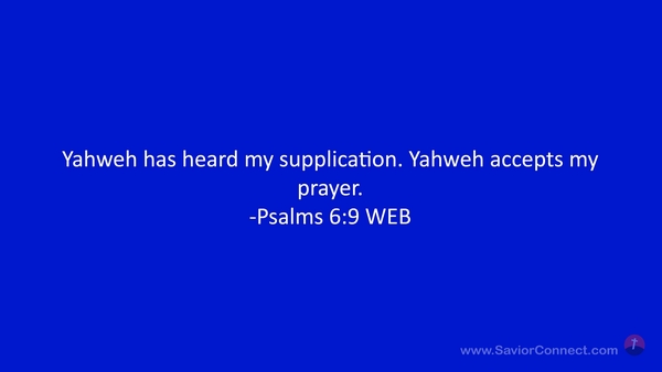 Yahweh has heard my supplication. Yahweh accepts my prayer. -Psalms 6:9 WEB