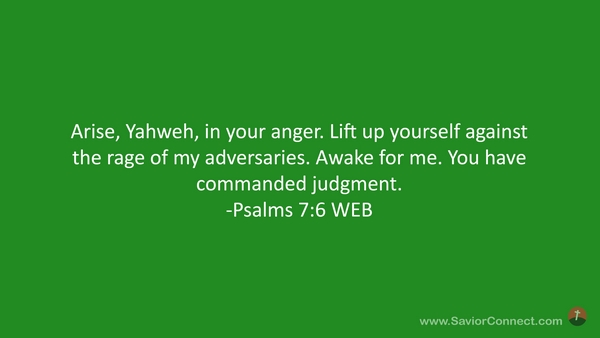 Arise, Yahweh, in your anger. Lift up yourself against the rage of my adversaries. Awake for me. You have commanded judgment. -Psalms 7:6 WEB
