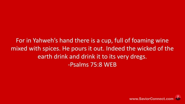 For in Yahweh’s hand there is a cup, full of foaming wine mixed with spices. He pours it out. Indeed the wicked of the earth drink and drink it to its very dregs. -Psalms 75:8 WEB