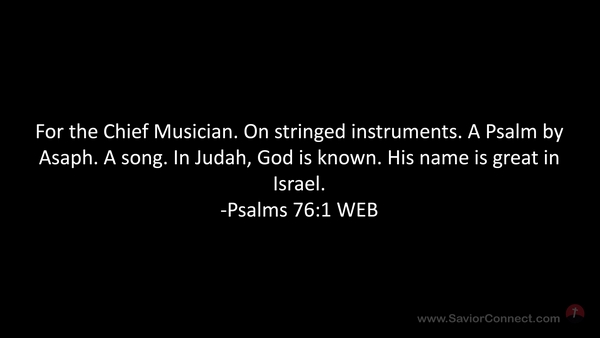 For the Chief Musician. On stringed instruments. A Psalm by Asaph. A song. In Judah, God is known. His name is great in Israel. -Psalms 76:1 WEB