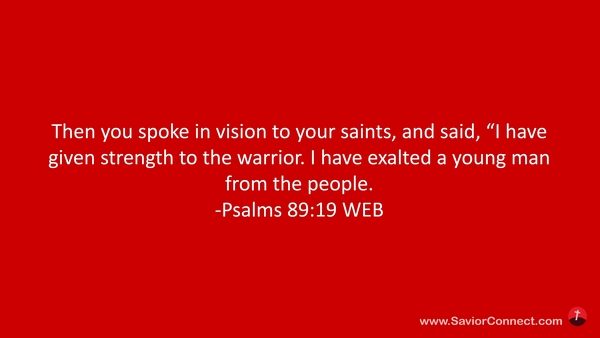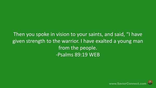 Then you spoke in vision to your saints, and said, “I have given strength to the warrior. I have exalted a young man from the people. -Psalms 89:19 WEB