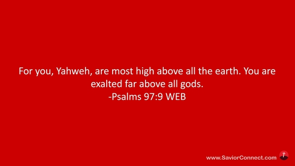 For you, Yahweh, are most high above all the earth. You are exalted far above all gods. -Psalms 97:9 WEB