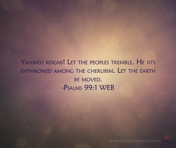 Yahweh reigns! Let the peoples tremble. He sits enthroned among the cherubim. Let the earth be moved. -Psalms 99:1 WEB