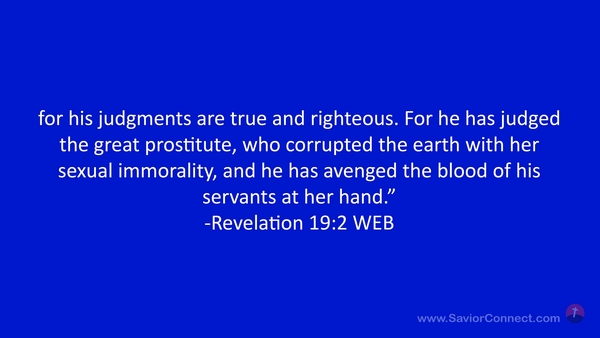 for his judgments are true and righteous. For he has judged the great prostitute, who corrupted the earth with her sexual immorality, and he has avenged the blood of his servants at her hand.” -Revelation 19:2 WEB