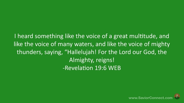I heard something like the voice of a great multitude, and like the voice of many waters, and like the voice of mighty thunders, saying, “Hallelujah! For the Lord our God, the Almighty, reigns! -Revelation 19:6 WEB