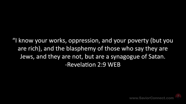 “I know your works, oppression, and your poverty (but you are rich), and the blasphemy of those who say they are Jews, and they are not, but are a synagogue of Satan. -Revelation 2:9 WEB
