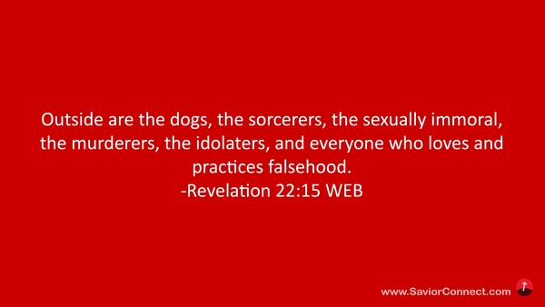 Outside are the dogs, the sorcerers, the sexually immoral, the murderers, the idolaters, and everyone who loves and practices falsehood. -Revelation 22:15 WEB