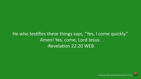 He who testifies these things says, “Yes, I come quickly.” Amen! Yes, come, Lord Jesus. -Revelation 22:20 WEB