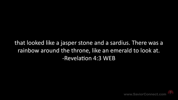 that looked like a jasper stone and a sardius. There was a rainbow around the throne, like an emerald to look at. -Revelation 4:3 WEB