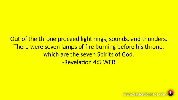 Out of the throne proceed lightnings, sounds, and thunders. There were seven lamps of fire burning before his throne, which are the seven Spirits of God. -Revelation 4:5 WEB