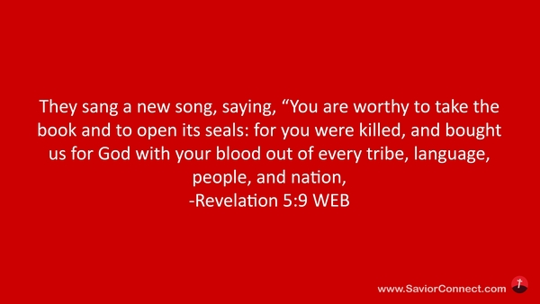 They sang a new song, saying, “You are worthy to take the book and to open its seals: for you were killed, and bought us for God with your blood out of every tribe, language, people, and nation, -Revelation 5:9 WEB