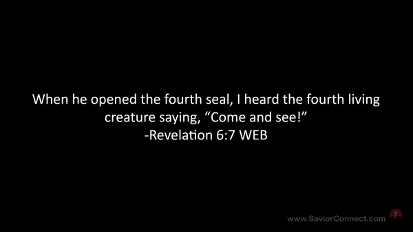 When he opened the fourth seal, I heard the fourth living creature saying, “Come and see!” -Revelation 6:7 WEB
