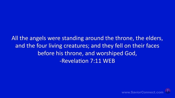 All the angels were standing around the throne, the elders, and the four living creatures; and they fell on their faces before his throne, and worshiped God, -Revelation 7:11 WEB