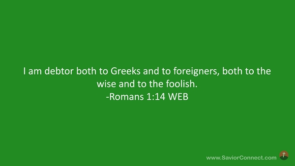 I am debtor both to Greeks and to foreigners, both to the wise and to the foolish. -Romans 1:14 WEB