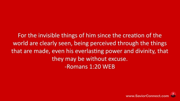 For the invisible things of him since the creation of the world are clearly seen, being perceived through the things that are made, even his everlasting power and divinity, that they may be without excuse. -Romans 1:20 WEB