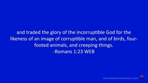 and traded the glory of the incorruptible God for the likeness of an image of corruptible man, and of birds, four-footed animals, and creeping things. -Romans 1:23 WEB